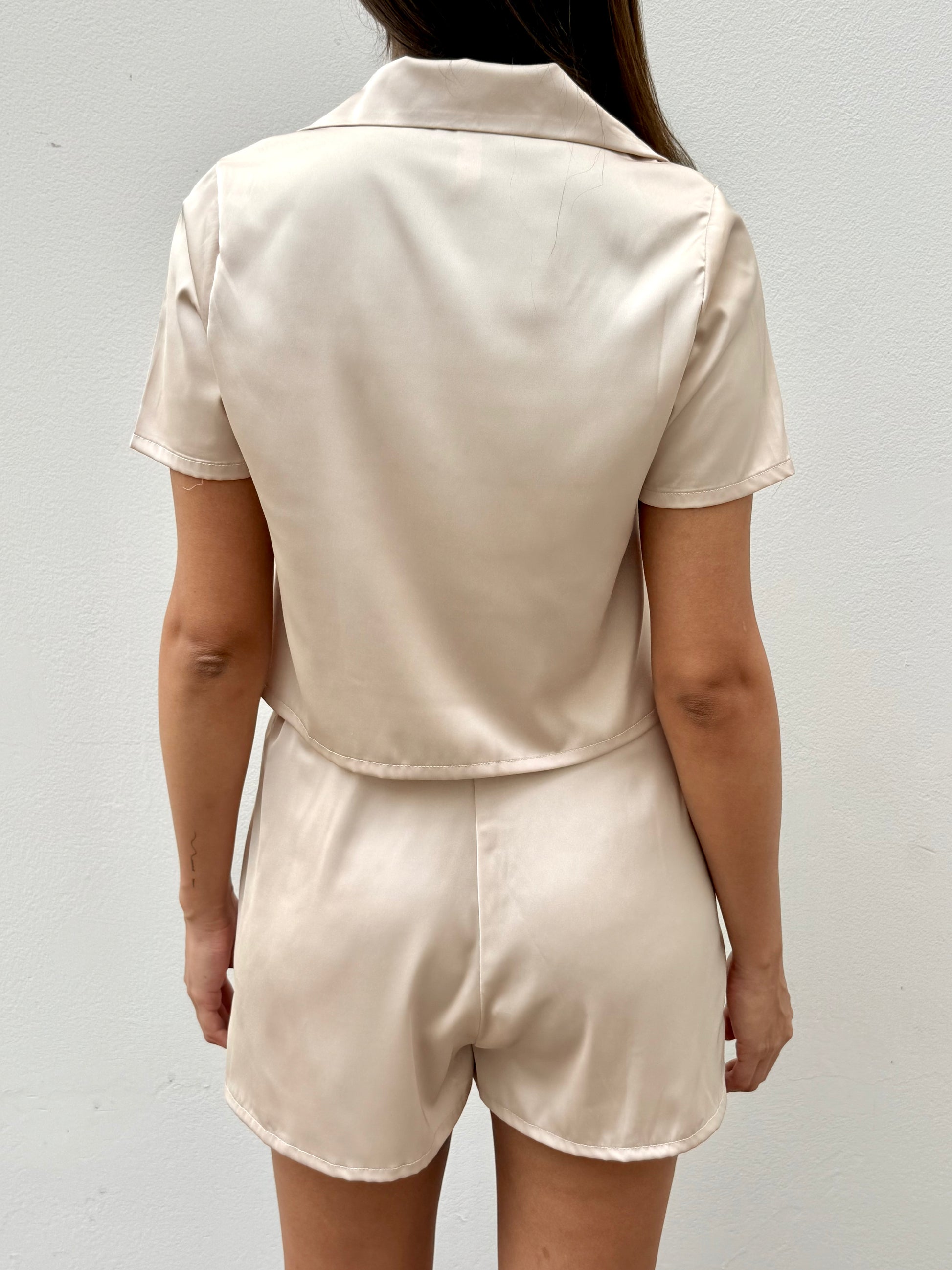 Un conjunto ligero que evoca la calidez de la arena bajo el sol.