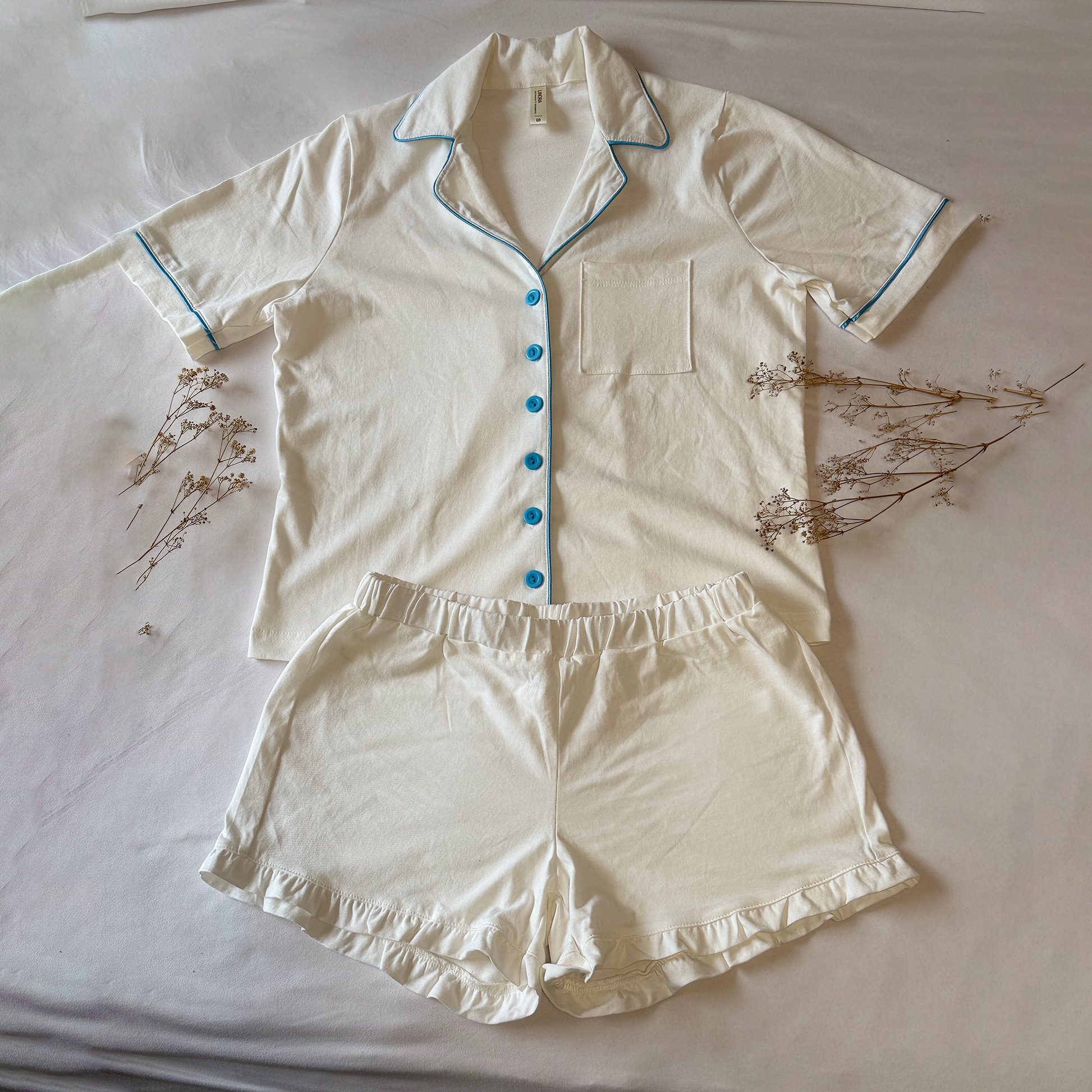 Vainilla con detalles en azul: fresco, versátil y elegante. Inspirado en la brisa marina y en la serenidad del verano.